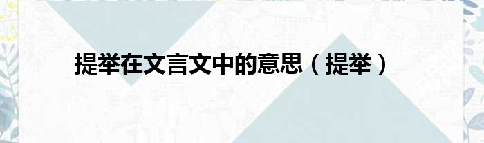 导读 大家好,今天小六子来为大家解答以下的问题,关于提举在文言文中的意思,提举这个很多人还不知道,现在让我们一起来看看吧!1、提举复:拼音
