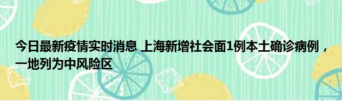 今日最新疫情实时消息 上海新增社会面1例本土确诊病例,一地列为中风险区