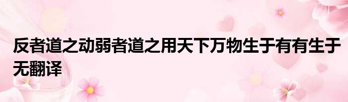 导读 大家好,今天小六子来为大家解答以下的问题,关于反者道之动弱者道之用天下万物生于有有生于无翻译这个很多人还不知道,现在让我们一起来看