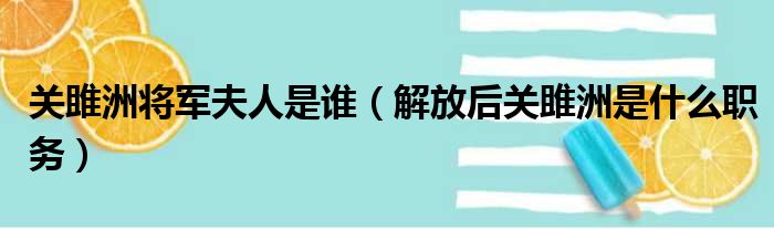 导读 大家好,今天小六子来为大家解答以下的问题,关于关雎洲将军夫人是谁,解放后关雎洲是什么职务这个很多人还不知道,现在让我们一起来看看吧
