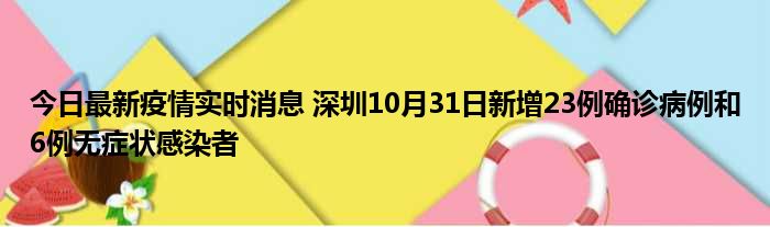 据深圳卫健委,10月31日0-24时,深圳新增23例新冠肺炎确诊病例和6例新冠病毒无症状感染者