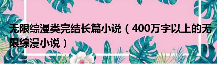 无限综漫类完结长篇小说(400万字以上的无限综漫小说)