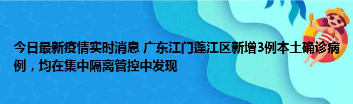 今日最新疫情实时消息 广东江门蓬江区新增3例本土确诊病例,均在集中隔离管控中发现