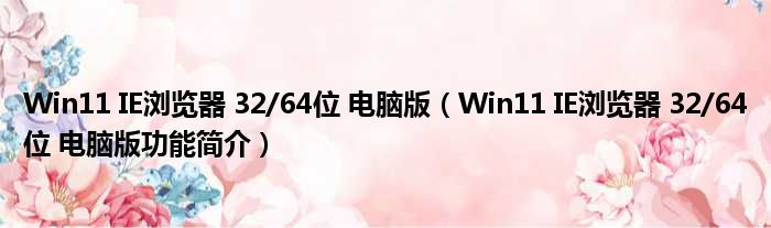 Win11 IE浏览器 32/64位 电脑版(Win11 IE浏览器 32/64位 电脑版功能简介)