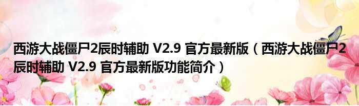 西游大战僵尸2辰时辅助 V2.9 官方最新版(西游大战僵尸2辰时辅助 V2.9 官方最新版功能简介)