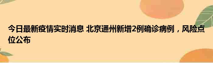 今日最新疫情实时消息 北京通州新增2例确诊病例,风险点位公布