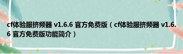导读 大家好,关于cf体验服挤频器 v1 6 6 官方免费版,cf体验服挤频器 v1 6 6 官方免费版功能简介这个很多人还不知道,小勒来为大家解答以上的