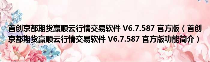 首创京都期货赢顺云行情交易软件 V6.7.587 官方版(首创京都期货赢顺云行情交易软件 V6.7.587 官方版功能简介)