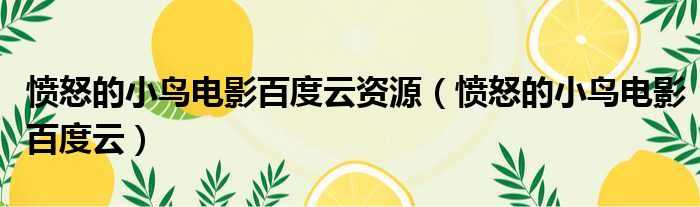 愤怒的小鸟电影百度云资源(愤怒的小鸟电影百度云)