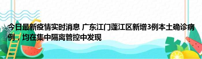 今日最新疫情实时消息 广东江门蓬江区新增3例本土确诊病例,均在集中隔离管控中发现
