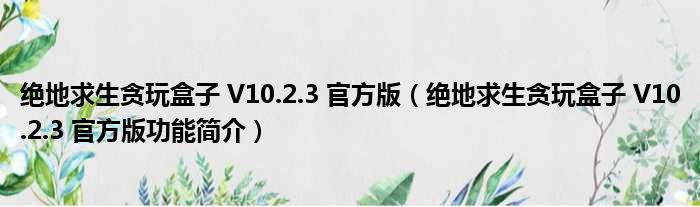 导读 大家好,关于绝地求生贪玩盒子 V10 2 3 官方版,绝地求生贪玩盒子 V10 2 3 官方版功能简介这个很多人还不知道,小勒来为大家解答以上的问