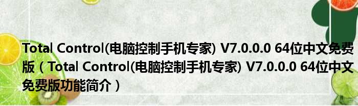 Total Control(电脑控制手机专家) V7.0.0.0 64位中文免费版(Total Control(电脑控制手机专家) V7.0.0.0 64位中文免费版功能简介)
