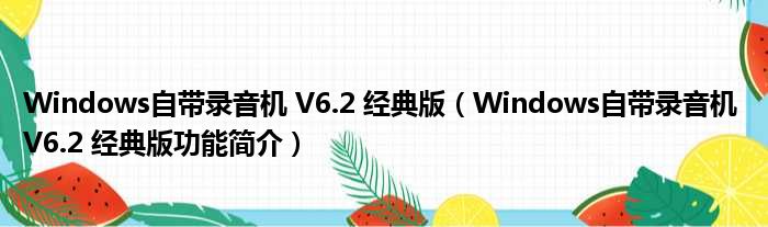 Windows自带录音机 V6.2 经典版(Windows自带录音机 V6.2 经典版功能简介)