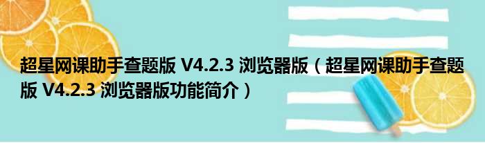 超星网课助手查题版 V4.2.3 浏览器版(超星网课助手查题版 V4.2.3 浏览器版功能简介)