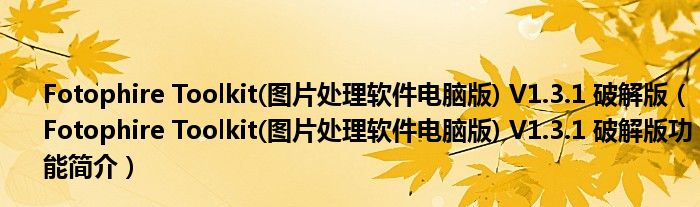 大家好,关于Fotophire Toolkit(图片处理软件电脑版) V1.3.1 破解版,Fotophire Toolkit(图片处理软件电脑版) V1.3.1 破解版功能简介这个很多人还不知道,小勒来为大家解答以上的问题,现在让我们一起来看看吧!