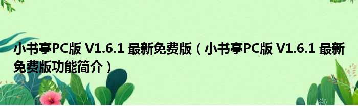 小书亭PC版 V1.6.1 最新免费版(小书亭PC版 V1.6.1 最新免费版功能简介)