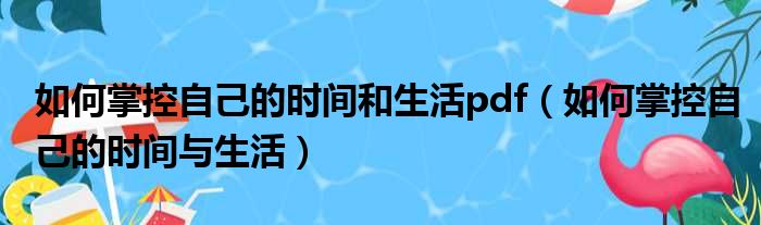 如何掌控自己的时间和生活pdf(如何掌控自己的时间与生活)