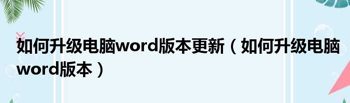如何升级电脑word版本更新(如何升级电脑word版本)