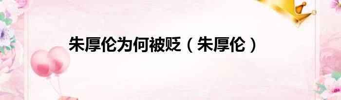 大家好,今天小六子来为大家解答以下的问题,关于朱厚伦为何被贬,朱厚伦这个很多人还不知道,现在让我们一起来看看吧!