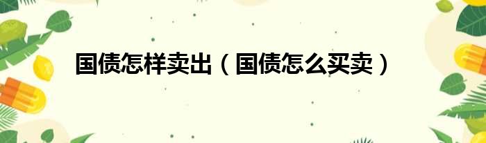 大家好,今天小六子来为大家解答以下的问题,关于国债怎样卖出,国债怎么买卖这个很多人还不知道,现在让我们一起来看看吧!
