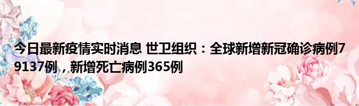 今日最新疫情实时消息 世卫组织:全球新增新冠确诊病例79137例,新增死亡病例365例