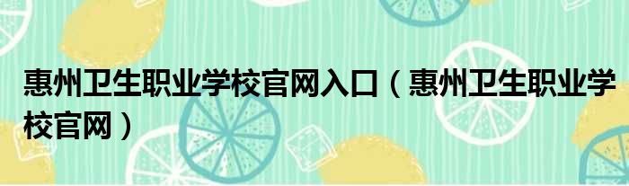 惠州卫生职业学校官网入口(惠州卫生职业学校官网)