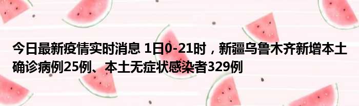 今日最新疫情实时消息 1日0-21时,新疆乌鲁木齐新增本土确诊病例25例、本土无症状感染者329例