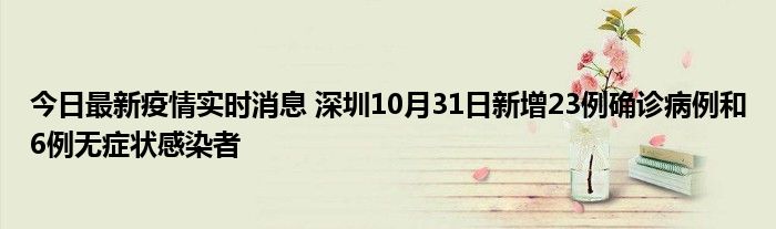 据深圳卫健委,10月31日0-24时,深圳新增23例新冠肺炎确诊病例和6例新冠病毒无症状感染者