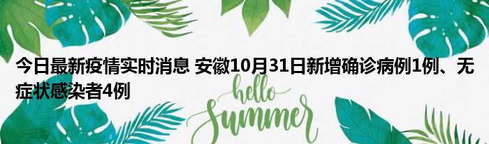 今日最新疫情实时消息 安徽10月31日新增确诊病例1例、无症状感染者4例