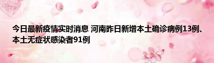 您的位置:首页 >房产频道 > 综合精选 > 今日最新疫情实时消息 河南昨日新增本土确诊病例13例、本土无症状感染者91例 2022-11-02 16:18:12 • 来源: 导读 免责声明:本文由用户上传,如有侵权请联系删除! 上一篇:今日最新疫情实时消息 深圳10月31日新增23例确诊病例和6例无症状感染者 下一篇:信阳学院怎么样非官方数据(信阳学院怎么样)