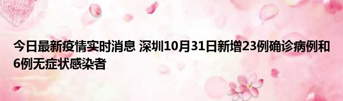 据深圳卫健委,10月31日0-24时,深圳新增23例新冠肺炎确诊病例和6例新冠病毒无症状感染者