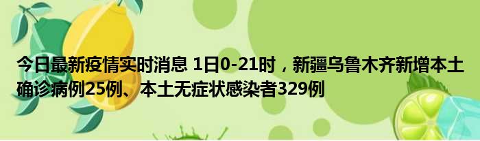 今日最新疫情实时消息 1日0-21时,新疆乌鲁木齐新增本土确诊病例25例、本土无症状感染者329例