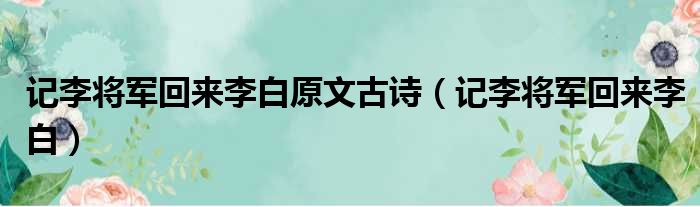 导读 大家好,今天小六子来为大家解答以下的问题,关于记李将军回来李白原文古诗,记李将军回来李白这个很多人还不知道,现在让我们一起来看看吧