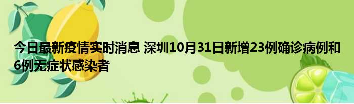 据深圳卫健委,10月31日0-24时,深圳新增23例新冠肺炎确诊病例和6例新冠病毒无症状感染者