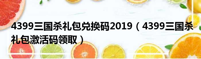4399三国杀礼包兑换码2019(4399三国杀礼包激活码领取)