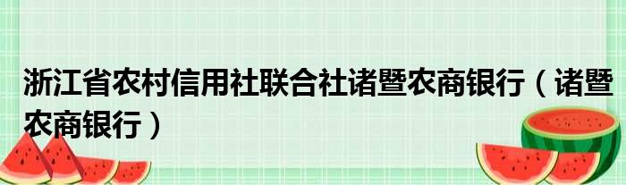 浙江省农村信用社联合社诸暨农商银行(诸暨农商银行)