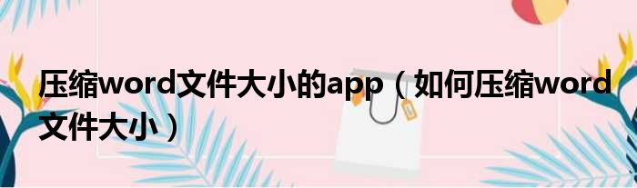 导读 大家好,今天小六子来为大家解答以下的问题,关于压缩word文件大小的app,如何压缩word文件大小这个很多人还不知道,现在让我们一起来看看吧