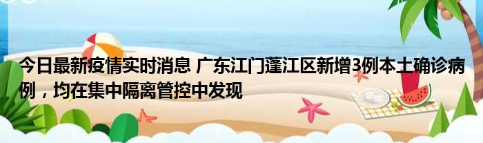 今日最新疫情实时消息 广东江门蓬江区新增3例本土确诊病例,均在集中隔离管控中发现