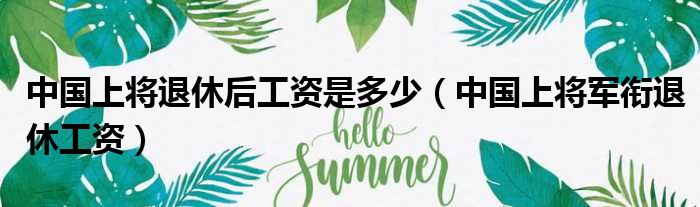 导读 大家好,今天小六子来为大家解答以下的问题,关于中国上将退休后工资是多少,中国上将军衔退休工资这个很多人还不知道,现在让我们一起来看