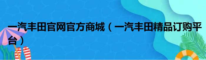 导读 大家好,今天小六子来为大家解答以下的问题,关于一汽丰田官网官方商城,一汽丰田精品订购平台这个很多人还不知道,现在让我们一起来看看吧