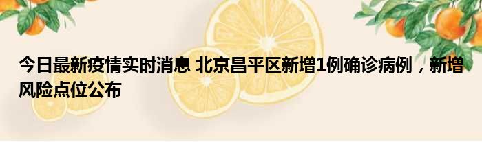 今日最新疫情实时消息 北京昌平区新增1例确诊病例,新增风险点位公布