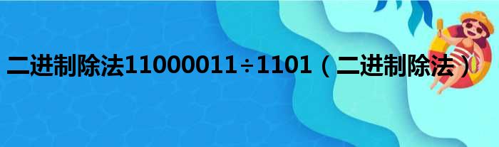 导读 大家好,今天小六子来为大家解答以下的问题,关于二进制除法11000011÷1101,二进制除法这个很多人还不知道,现在让我们一起来看看吧!1、二