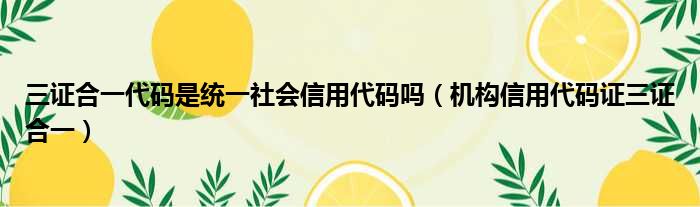 三证合一代码是统一社会信用代码吗(机构信用代码证三证合一)