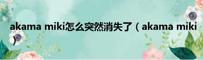 导读 大家好,今天小六子来为大家解答以下的问题,关于akama miki怎么突然消失了,akama miki这个很多人还不知道,现在让我们一起来看看吧!1、