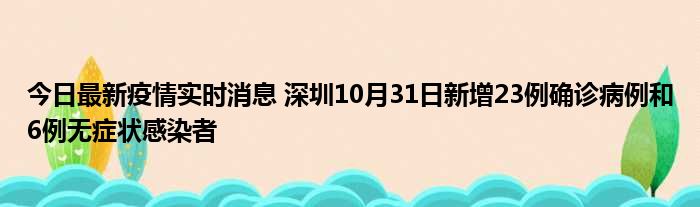 据深圳卫健委,10月31日0-24时,深圳新增23例新冠肺炎确诊病例和6例新冠病毒无症状感染者