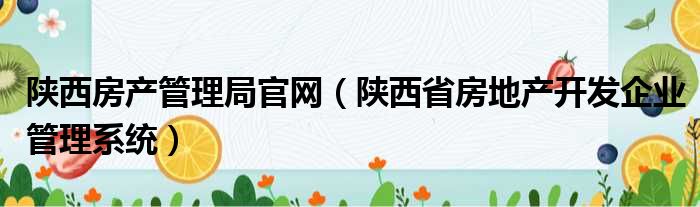 陕西房产管理局官网(陕西省房地产开发企业管理系统)