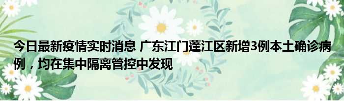 今日最新疫情实时消息 广东江门蓬江区新增3例本土确诊病例,均在集中隔离管控中发现