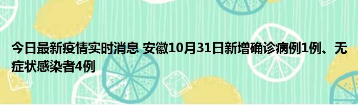 今日最新疫情实时消息 安徽10月31日新增确诊病例1例、无症状感染者4例