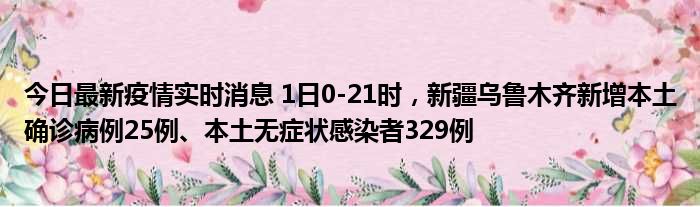 今日最新疫情实时消息 1日0-21时,新疆乌鲁木齐新增本土确诊病例25例、本土无症状感染者329例