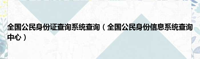 全国公民身份证查询系统查询(全国公民身份信息系统查询中心)